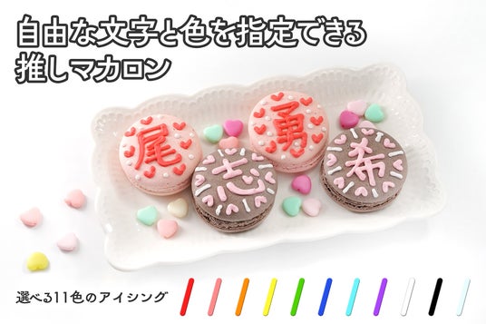 「推しマカロン」は、推し活アプリOshibanaが提案する、推しをお祝いするための特別なマカロンです。マカロンと、推し色(推しカラー)、推しマークを組み合わせた造語です。