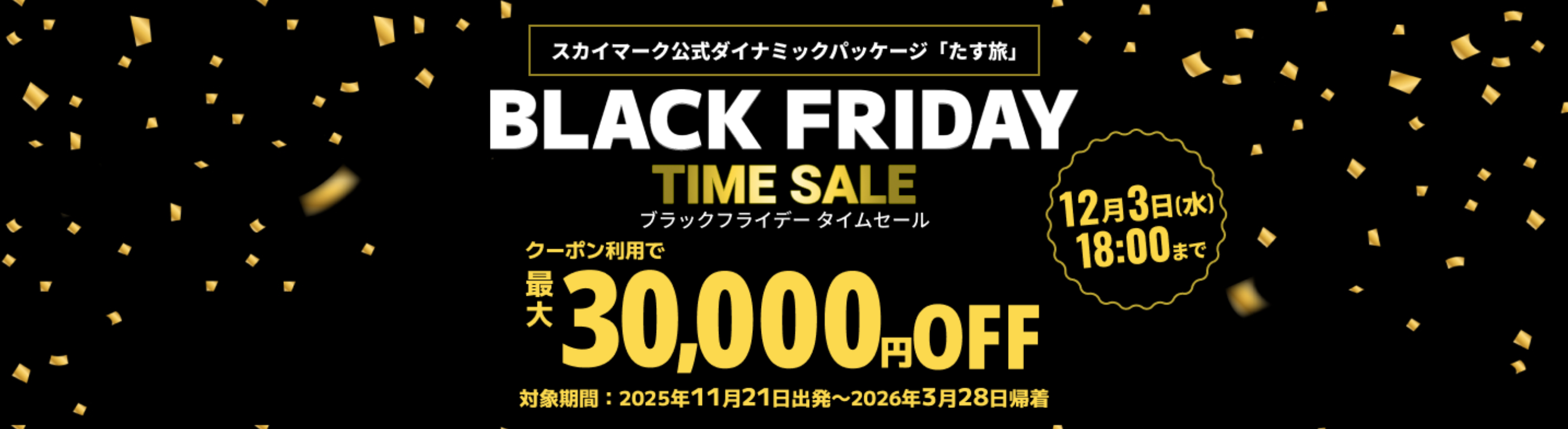 【WEB予約限定】ダイナミックパッケージ『たす旅』にてBLACK FRIDAY TIME SALE 実施中!最大30,000円引きの期間限定クーポンを使っておトクに旅しよう!