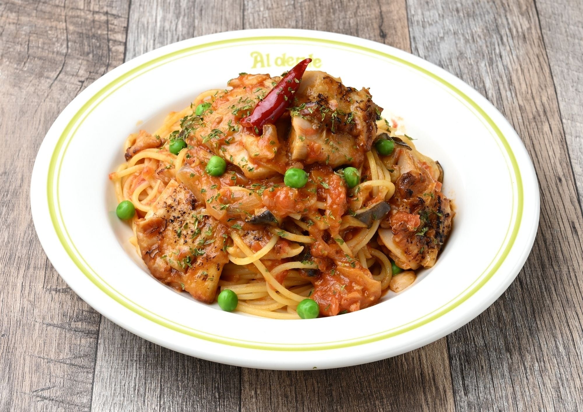 ゴロっとした鶏肉とバターが溶けた、コクのあるトマトソースが食べ応えのある一品です。