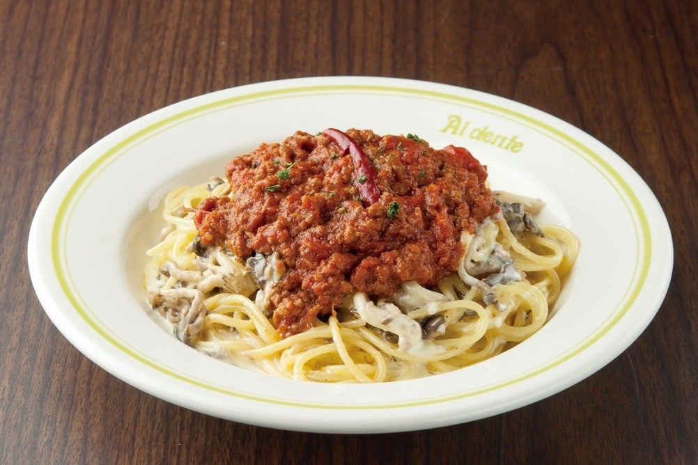 イタリア航空会社のクルー直伝のレシピで作られたスパゲッティ。濃厚な生クリームソースにボロネーゼの酸味が絡む絶妙な味わいがクセになります。