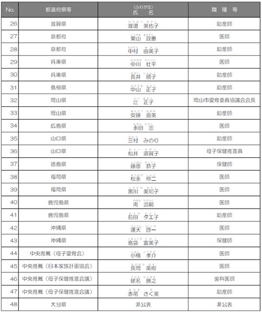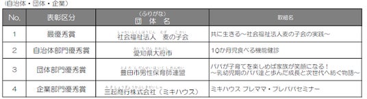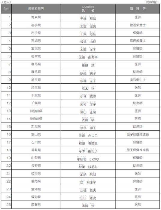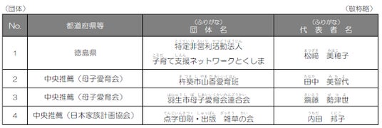 成育並びに妊産婦の健康の保持及び増進に寄与する取組を推進している個人・団体・自治体