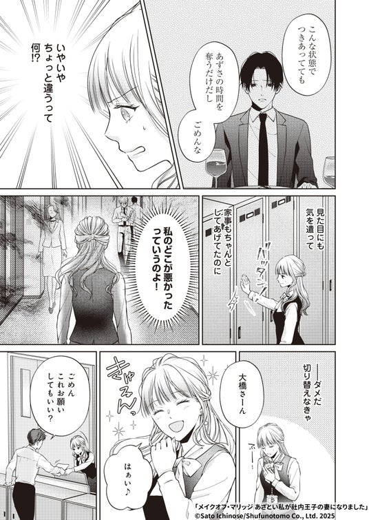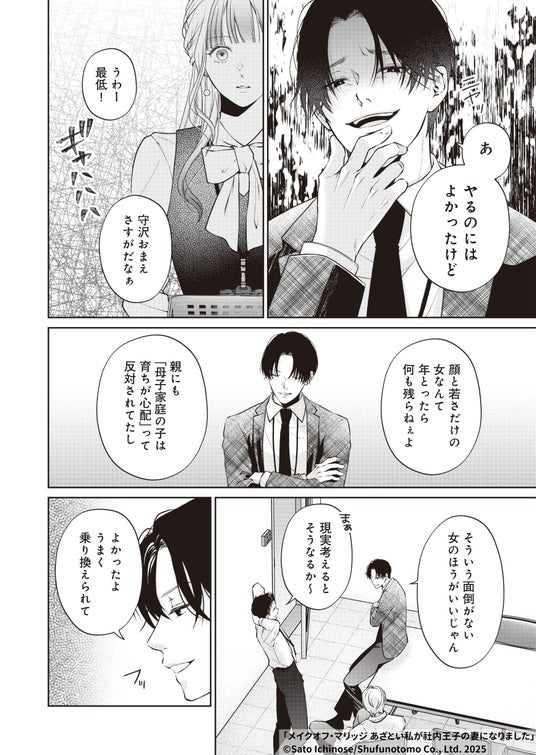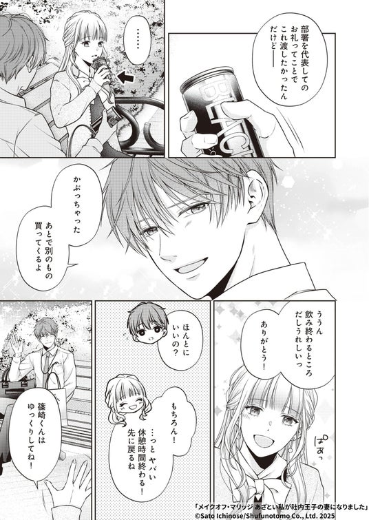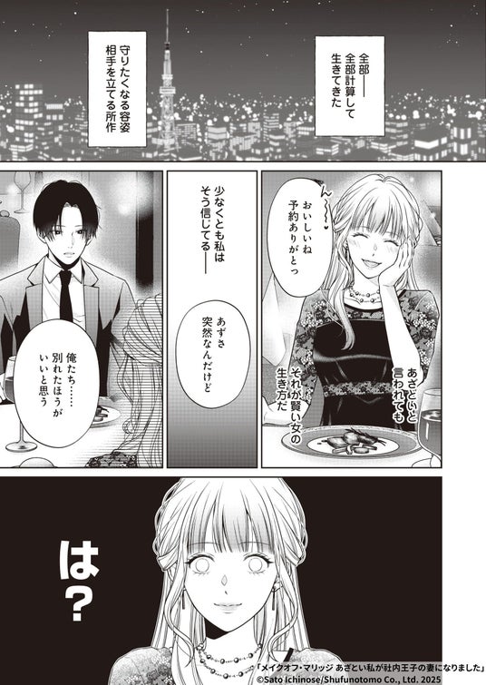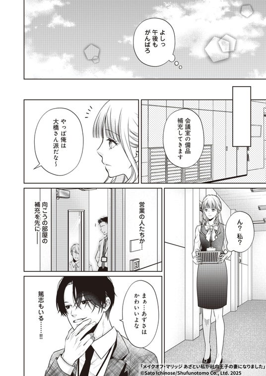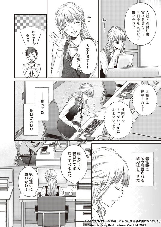 株式会社主婦の友社が運営する女性向け電子コミックレーベル「TOMO COMICS」は、2025年11月21日(金)午前0時『メイクオフ・マリッジ あざとい私が社内王子の妻になりました』(原作:Candle Pro. 作画:一ノ瀬さと)を各電子書籍ストアにて配信いたします。