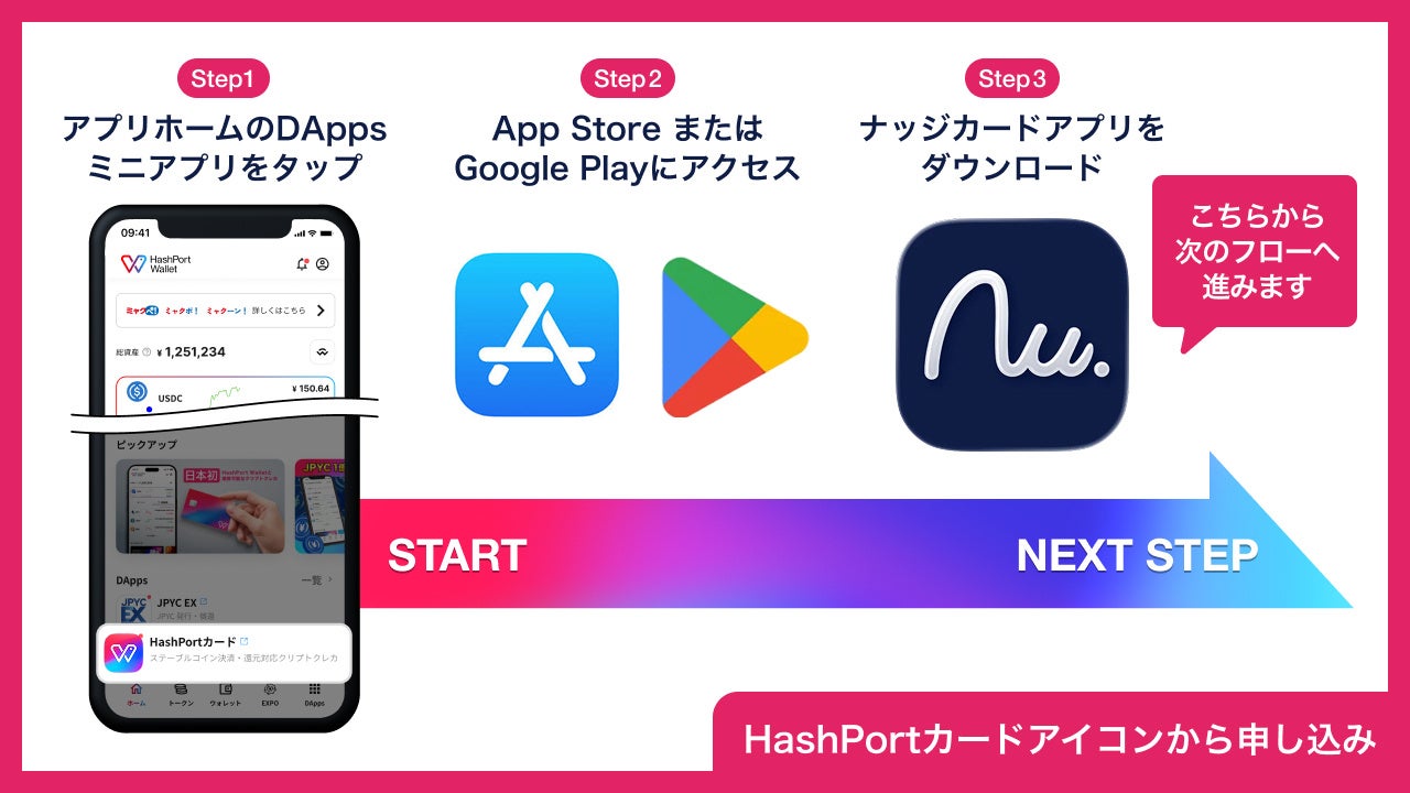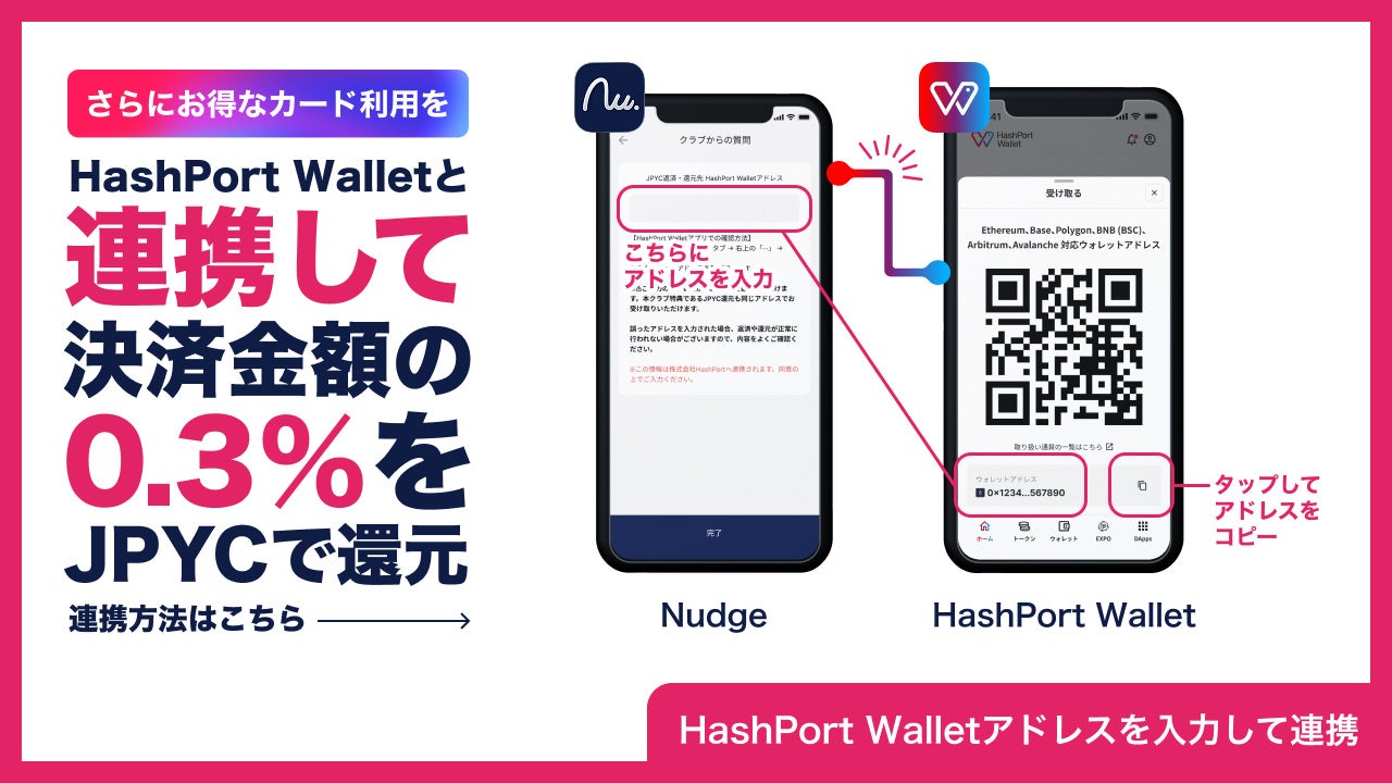 株式会社HashPort(本社:東京都港区、代表取締役CEO:吉田世博)は、ナッジ株式会社(本社:東京都千代田区、代表取締役:沖田 貴史)と提携し、クリプトクレジットカード「HashPortカード」を本日2025年11月21日より発行開始致しました。「HashPortカード」は、日本初となる、ステーブルコインでの後払い決済・還元体験を提供します。