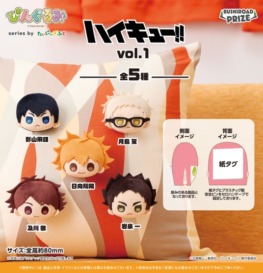 おめめぱっちりの”ぷち”サイズのぬいぐるみシリーズ「ぷちっしゅ!」とぬいぐるみバッジシリーズ「ぴんぐるみ」にアニメ『ハイキュー!!』が登場!手に収まるサイズ感のぬいぐるみで、カバンやポーチにも付けやすい!いつでもどこでも一緒におでかけできます。