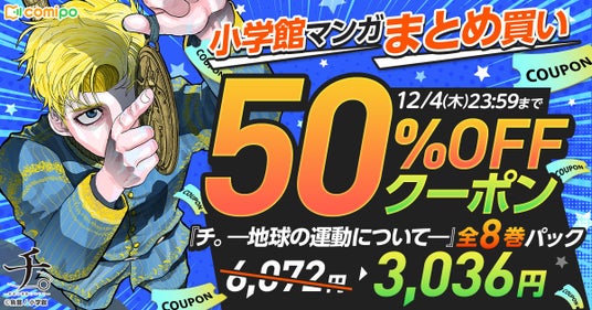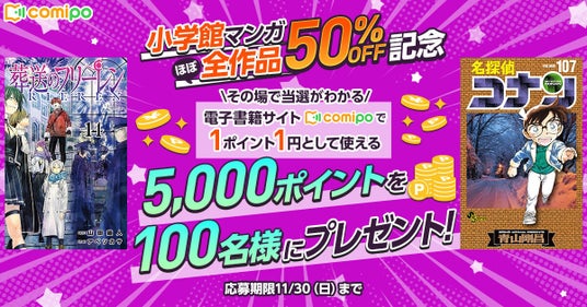 株式会社 viviON(所在地:東京都千代田区、代表取締役:明石耕作)は、自社が運営する電子書籍ストア「comipo」において、2025年11月21日(金)から12月4日(木) 23:59までの期間限定で、小学館のほぼ全てのマンガを対象とした「小学館マンガ ほぼ全作品 50%OFFキャンペーン」を開催することをお知らせいたします。