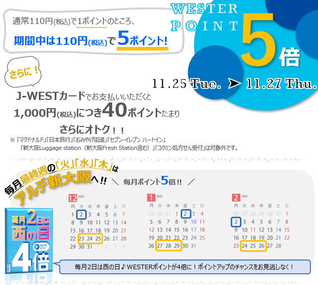 「アルデひろば」「アルデひろばプラス」の期間限定ショップ、新店情報、アルデあるある感謝まつり、WESTERポイントアップなど、お得な情報をお届けします!