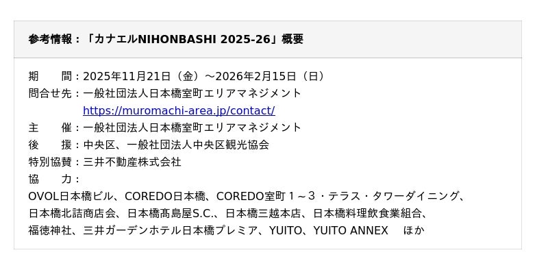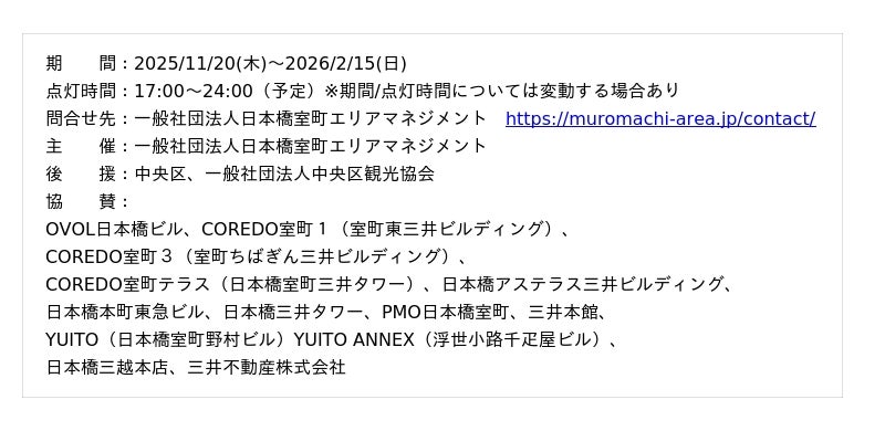 一般社団法人日本橋室町エリアマネジメントHP:https://muromachi-area.jp/