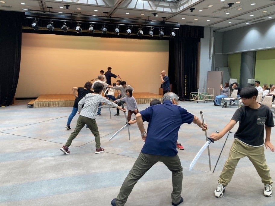 本公演は、亀岡市内在住の小中学生16名が出演する「市民参加型」の舞台です。プロの能楽師と共演し、大丹波甲冑交流会のメンバーと共に迫力あるシーンを創り上げます。