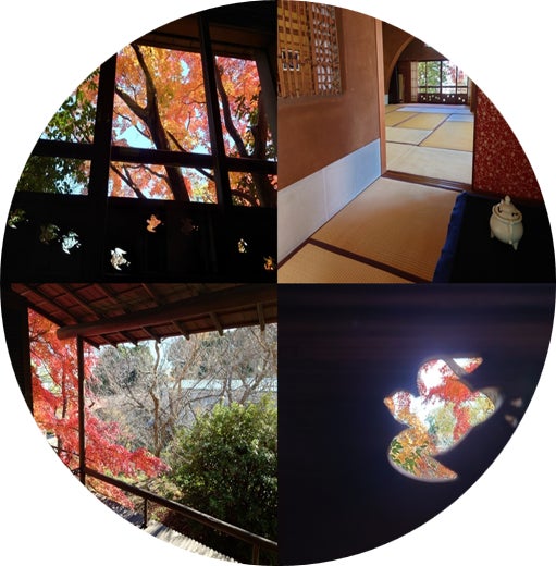 和室の庭先を彩る紅葉の景色と共にお茶席をお楽しみいただけます。