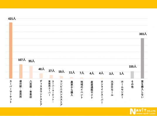 栗を購入する場所についてのアンケートを複数回答にていただきました。購入場所で1番多かったのが「スーパーマーケット」で421人、次に多かったのが「道の駅・直売所」で107人、3番目が「八百屋・青果店」で95人という結果になりました。