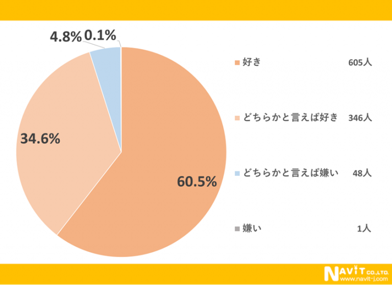 栗は好きですか?というアンケートでは「好き」と答えた人が1番多く60.5%という結果になりました。「どちらかと言えば好き」という人が34.6%で合計すると95.1%の人が栗に好印象を持っているという結果になりました。