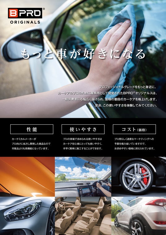 BPROは、カーケミカルメーカーが「性能」「使いやすさ」「コストパフォーマンス」に重点を置いて開発したプロユースのためのカーケアブランドです。