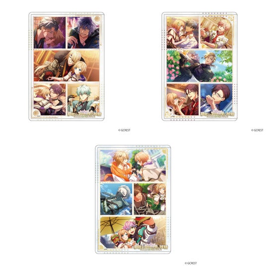 色鮮やかな公式イラストが映えるA5サイズのアクリルボードです。「プリムスクラブ」「ガストロノミー」「虹の彼方」の全3種がラインナップ。
