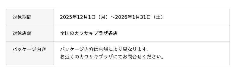 株式会社カワサキモータースジャパン(本社:兵庫県明石市、代表取締役社長:佐伯 健児)が展開するカワサキ プラザネットワークでは、期間中アパレルやグッズなどをたくさん詰め込んだ「ウィンターギフト」をパッケージにして販売します。
