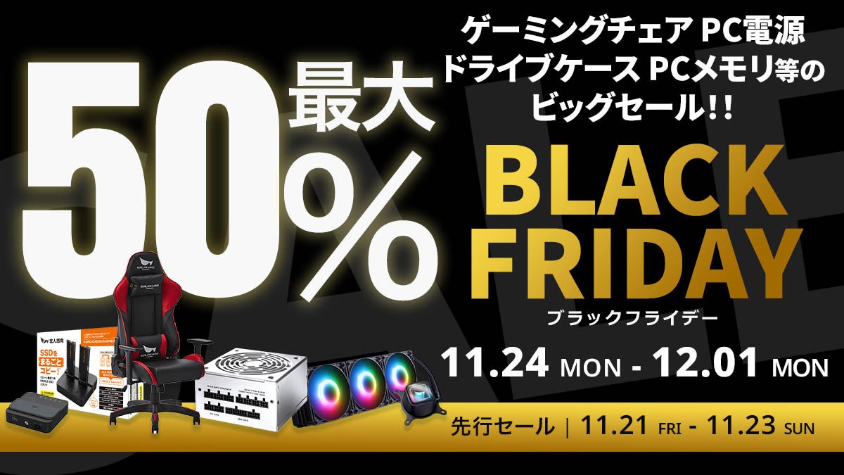 2025年11月24日(月)から12月1日(月)にわたってAmazonで開催される「ブラックフライデー」と、11月21日(金)から開催される「先行セール」にて、玄人志向とCFD販売の人気製品が最大50%OFFとなるセールを実施します。