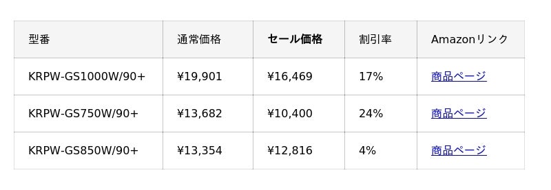 ・80PLUS GOLD取得 プラグイン ATX電源 GSシリーズ