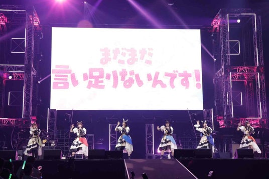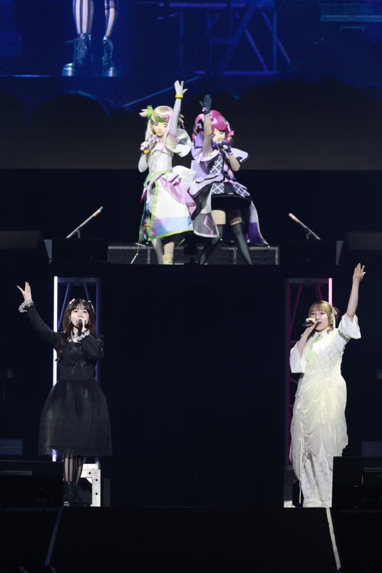 続いてはフランシュシュが「徒花ネクロマンシー」(TVアニメ『ゾンビランドサガ』)、「REVENGE」(TVアニメ『ゾンビランドサガ リベンジ』)、「またたく宇宙(ソラ)に憧れて」(劇場版『ゾンビランドサガ ゆめぎんがパラダイス』)の3曲をお届け。4年ぶりのライブに会場は待望の時が来たと言わんばかりの声援を送った。