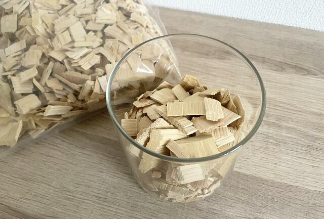 こちらは、ヒバの有効成分が多く含まれる赤身と呼ばれる部分だけを使用したチップ。