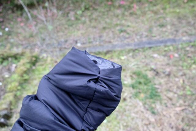 中綿がダウンの場合は、ダウンが濡れてペチャンコになった状態で乾燥するので、ふっくらしません。