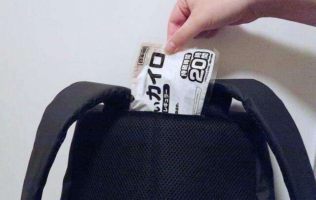 寒い日はここに携帯カイロを入れると背中がポカポカです。