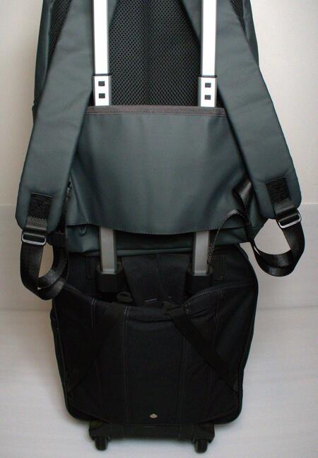 キャリーケースのハンドルに通してリュックを固定できるスリーブもついているので、旅行のサブバッグとしてもおすすめです!