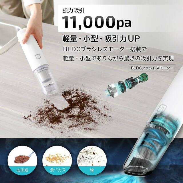 BLDCブラシレスモーターを搭載し、11,000Paのパワフルな吸引力を実現。ペットの毛も逃しません。