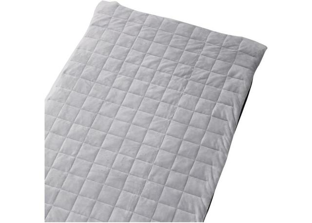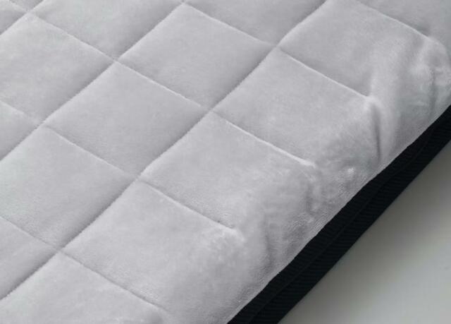 この「敷きパット ウォーム」の機能面は、中綿には温度調節効果のある特殊な粒わたと、湿度調整わたが入っているとのこと。
