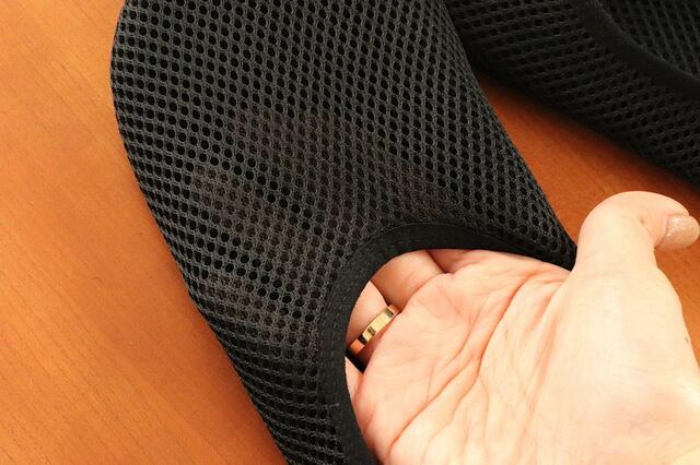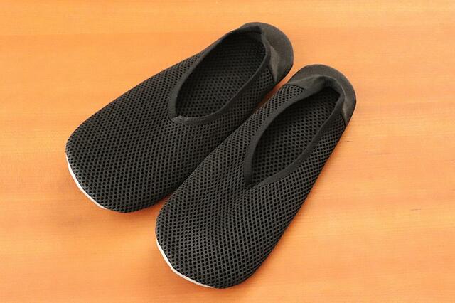 ぱっと見はただの「持ち運び用スリッパ」という感じですよね。しかもメッシュ生地で秋冬には向かなそう。