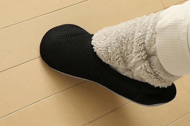 そこで考えたのが、ルームソックスと「おうちスリッポン」との重ね履き。