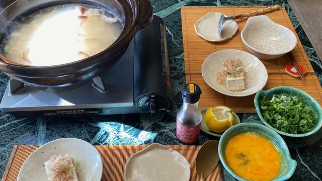 卵雑炊の原価は300円くらいかな? 安売りの鯛のアラ(頭もついている)を使って、家計の足しにいたしましょう。絹豆腐、