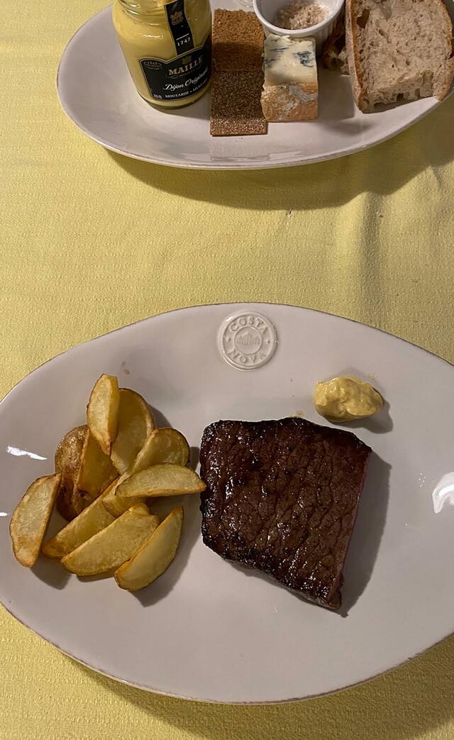 ビーフステーキ+ポテトフライ、パイナップル。素晴らしいお天気でした、気分爽快。