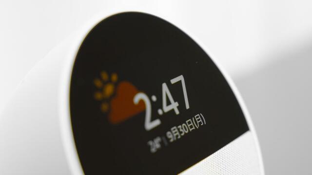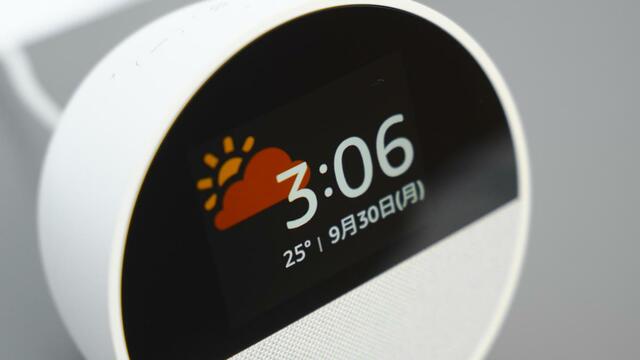 「Echo Spot」が表示するのは、日付・時刻・天気・気温の4つのみで、ニュースやAmazonからのレコメンドされた情報は意図的にカットされています。
