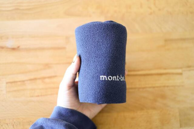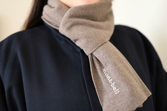 コンパクトに収まるので首元がすっきり見え、それでいてしっかりあたたかい! モンベルのさりげないロゴもポイントになってかわいい〜。