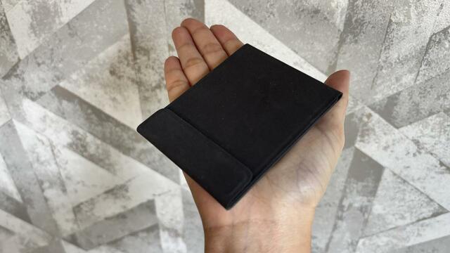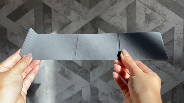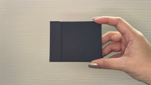 畳んだ状態の本体の大きさは幅約7.2cm×高さ9.3cm×奥行き0.8cmと、とてもコンパクト。そして、びっくりするくらい小さいし薄いです。