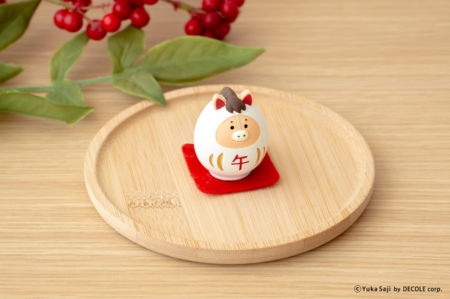 可愛らしい表情の馬だるまは、紅白で揃えて並べるとおめでたい雰囲気に。
