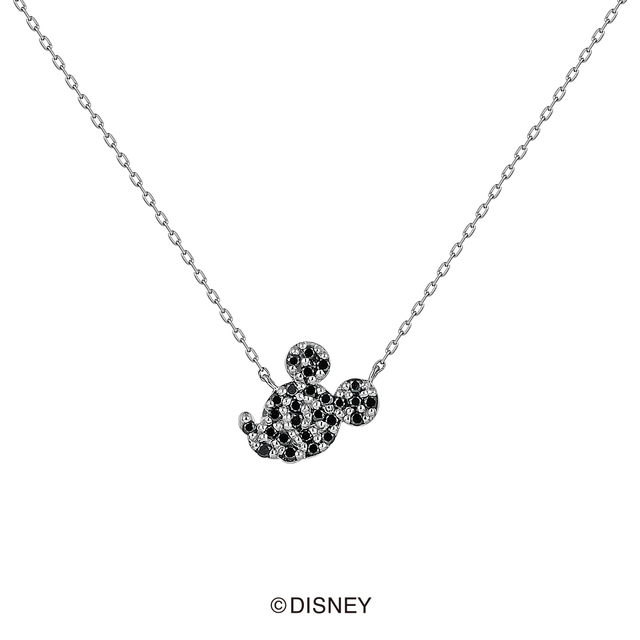 ネックレスは、ストーンがリズミカルに並び、その配置がさりげなくミッキーマークに。