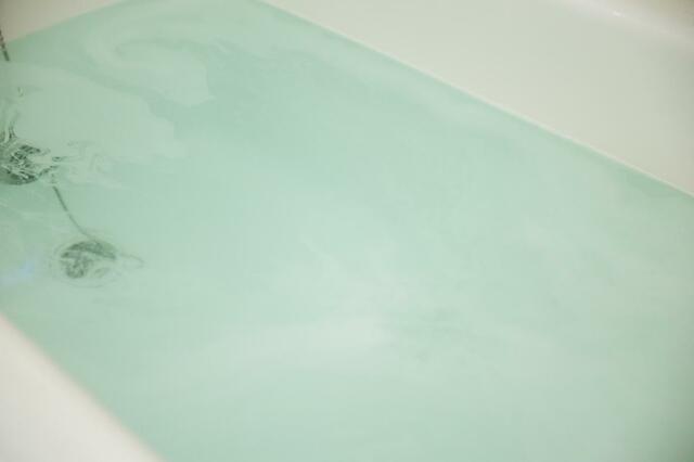 無香料・無着色なので、お湯は無色透明のままです。一見すると「何も入っていない」ように感じますが、ちゃんと溶けています。
