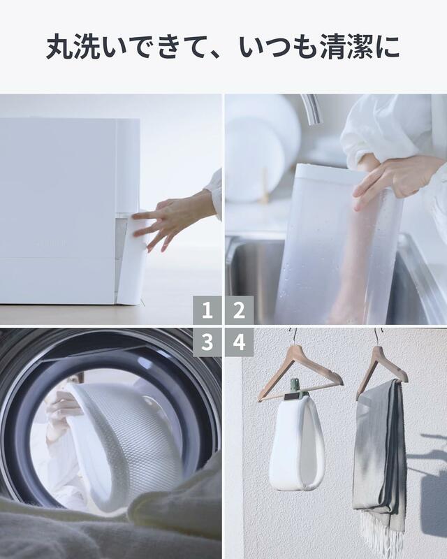 加湿フィルターは洗濯機で洗えるので、いつでも清潔に保てるのが安心感がありますね。