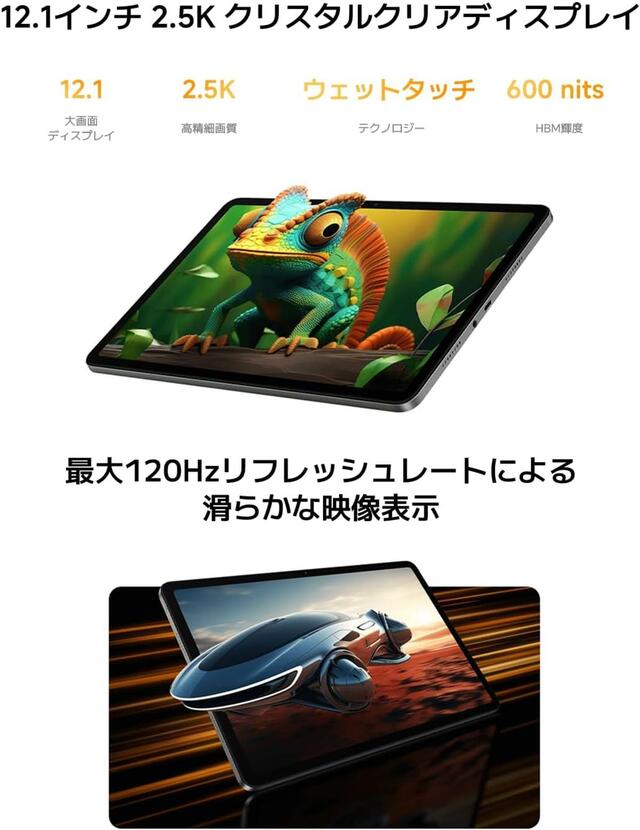 12.1インチの大画面&最大120Hzリフレッシュレートで見やすさ抜群