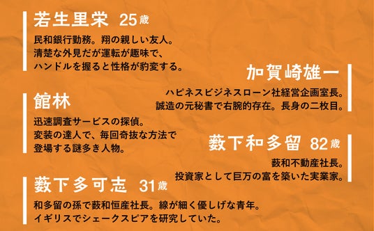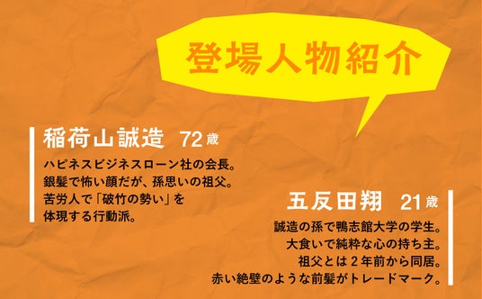 関西の金融会社会長・稲荷山誠造(72歳)は、金融管理庁の立入検査に大銀行からの買収話と、会社存亡の危機にてんやわんや。そんな最中、金貸し会社には似つかわしくない若い女性が来社し、「翔さんと連絡が取れないのです」と告げる。翔とは誠造の孫だ。調査の結果わかったのは、翔は何者かに拉致されたらしいということ。