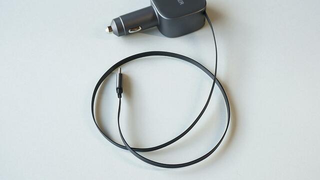 使用時に必要な長さだけケーブルを引き出せて、使用後は本体にすっきりと収納できます。運転席周りにケーブルがだらんと垂れている、ケーブルが絡まる、といった煩わしさから解放してくれることでしょう。