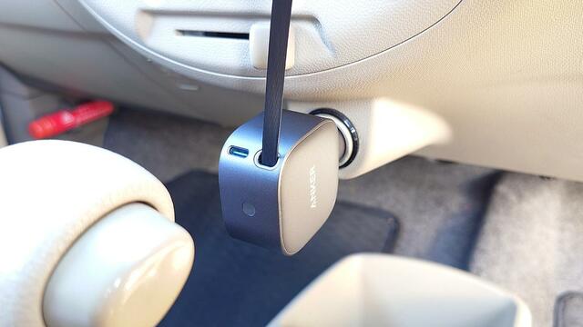 「Anker Nano Car Charger (75W, 巻取り式 USB-Cケーブル)」は、シガーソケットに挿し込んで使う、2ポート合計75Wの急速充電に対応した充電器。しかも、掃除