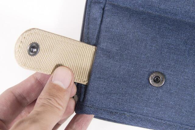本体の下側についているロゴが書かれたベルトのホックを外し。