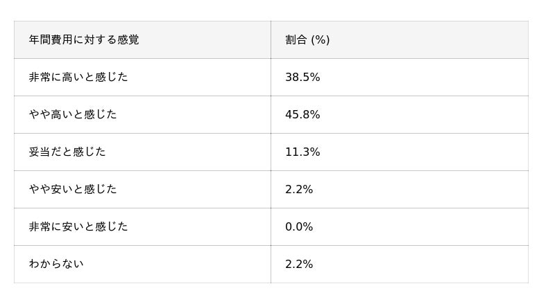 さらに、「年間50万円未満」まで範囲を広げると、その割合は65.8%にのぼります。この結果から、保護者の約3分の2が、年間50万円を超えない費用を「妥当な金額」だと捉えている実態が明らかになりました。