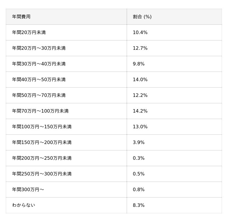 【実際の支出額】半数近くが年間50万円超え!最も割合が高い価格帯は「70万円~100万円」。100万円超えも約2割にのぼる驚愕の支出実態