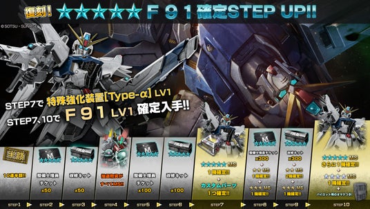 ログインボーナスや「復刻F91確定抽選配給」も実施中!