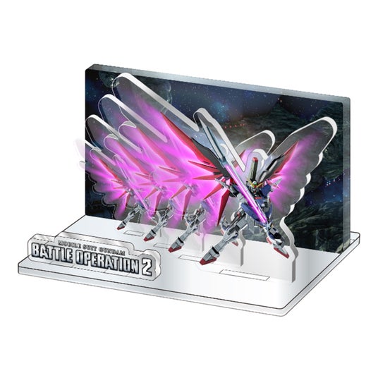 『バトオペ2』 に「デスティニーガンダム」の実装が決定したことを記念して、公式Xでキャンペーンを実施いたします。PlayStation(R)版公式XもしくはSteam(R)版公式Xをフォロー&キャンペーン投稿をリポストすることで応募が完了いたします。まるで「デスティニーガンダム」が飛び出してくるような、立体のアクリルスタンドがプレゼントでもらえるチャンスとなりますので、ぜひ忘れずにご応募ください!