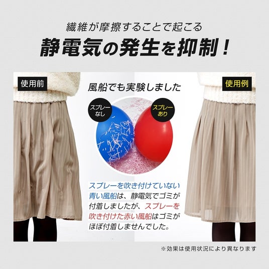 静電気のパチパチ対策に!静電気による花粉やダストの付着を抑制するスプレー(※1)。クリーニング屋さんが使っている業務用(※2)。スカートのまとわりつきや、セーター・ニット・車のシートなどに。約62着分(※3)。無香料。
