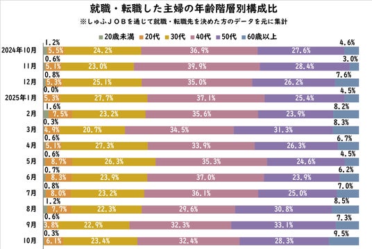 年齢段階層別の構成比では、60歳以上の比率が9.5%と、前月の8.5%からさらに上昇し、同条件で比較可能な2016年7月以降で過去最高を記録しました。