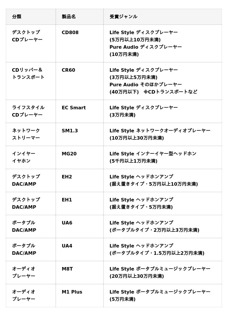 Life Style ディスクプレーヤー(15万円以上30万円未満) / Pure Audio ディスクプレーヤー(20万円以上40万円未満)